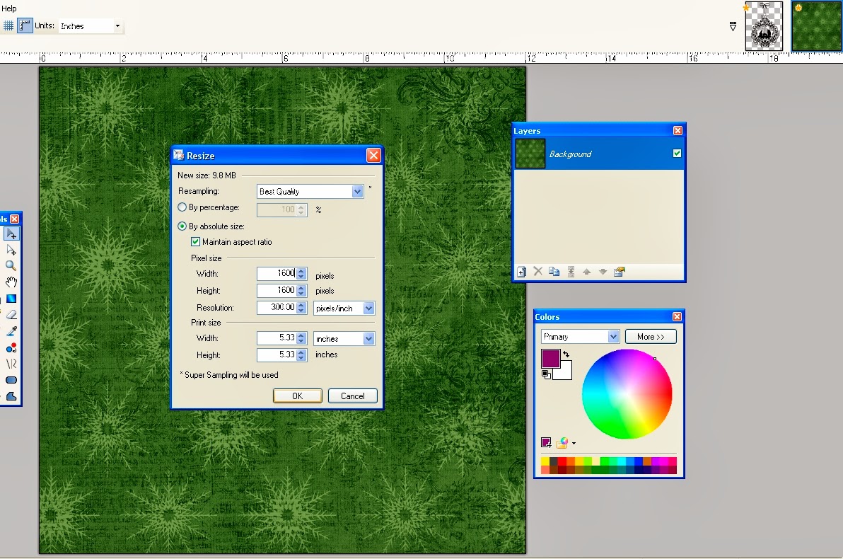 2. Optional: You might want to resize your paper so the pattern will fit nice onto your digi. I know that my digi is 1600 pixels tall, so I resized my digi paper to 1600 pixels (go up to IMAGE and click RESIZE)